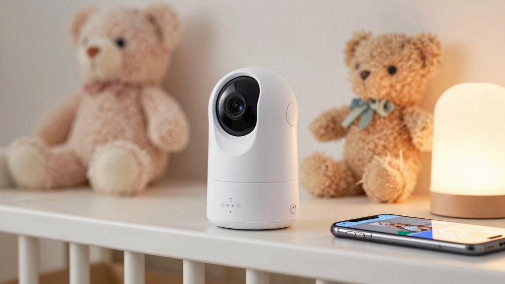 Your baby monitor’s firmware updates should be done as often as possible—think weekly or at least once a month. Regular updates guarantee you get the latest security patches, safeguarding your child’s privacy. Outdated firmware leaves you vulnerable to hackers and vulnerabilities. So, set a calendar reminder and stay proactive to keep your monitor secure, because neglecting updates is like leaving your front door wide open in a storm.