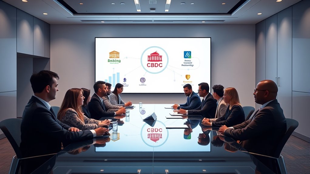 As you navigate the development of CBDCs through public-private partnerships, you must recognize that control is not absolute. Both sectors share responsibilities and risks. While private firms drive innovation, central banks hold the regulatory reins. Maintaining transparency, respecting digital sovereignty, and overcoming regulatory challenges are vital steps to ensure these partnerships serve the public interest without compromising control or security. Only by addressing these issues can CBDCs fulfill their promise of modern, trustworthy digital currencies.