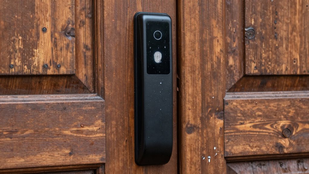 Smart locks with fingerprints don’t work with all door types. You might face installation challenges, especially on wooden, metal, or uneven doors. Weather conditions and door alignment can affect sensor performance, creating potential security vulnerabilities if not installed properly. Before purchasing, check compatibility with your door’s material and guarantee proper alignment. Otherwise, you risk compromised security and unreliable access, which defeats the purpose of a smart lock.