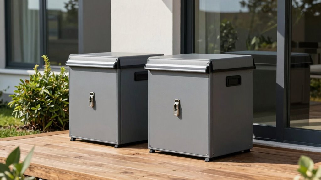 In the grand tapestry of porch security, you should opt for rust-resistant metals like aluminum or stainless steel, which stand strong against the elements. Applying weatherproof coatings adds an extra layer of protection, ensuring your delivery box resists rain, snow, and sun. These materials and treatments work together, turning your setup into a fortress that endures through time’s relentless march, much like a noble relic standing resilient in a modern age.