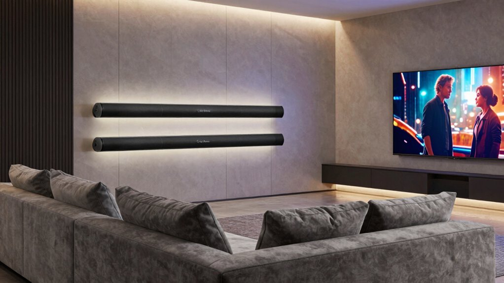 Wall-mounting isn’t strictly necessary for ideal Atmos effect, but it considerably enhances the experience. Proper placement is key, and mounting your soundbar at ear level or slightly above can improve sound height and clarity. If your setup allows, wall mounting helps create a more immersive, realistic Atmos environment by aligning the soundbar’s speakers for better height cues. So, while not mandatory, wall mounting is highly recommended for the best results.