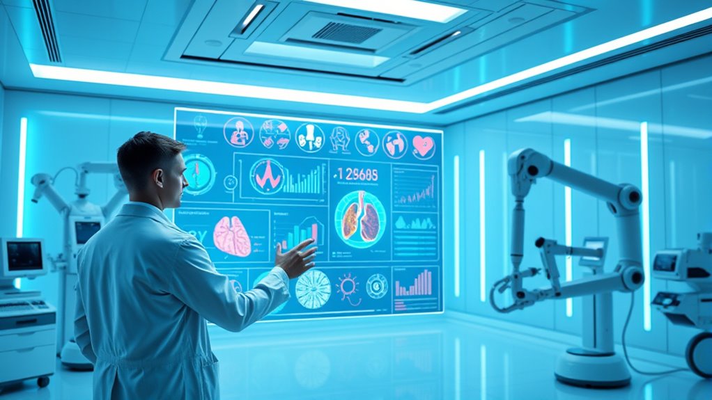 This pattern recognition isn’t just about spotting problems; it actively predicts future health issues. For example, AI models can forecast when your condition might worsen, alerting your healthcare team in time to intervene. These insights lead to data-driven decisions that often surpass what individual clinicians can achieve alone, dramatically improving your overall care quality. Instead of relying solely on experience, your treatment is now informed by vast, complex data that AI helps interpret quickly and precisely.