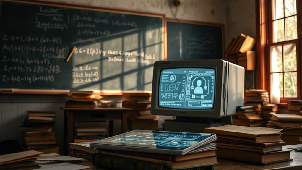 Past technology failures in education show that quick fixes and flashy innovations often ignore deeper issues like equity and long-term sustainability. Crises lead to rapid deployments of tools that sometimes leave underserved students behind, much like radio, TV, and computer-based programs before AI. These lessons remind you that successful tech integration requires careful planning, inclusivity, and aligning with teaching goals. Keep exploring and you’ll uncover how avoiding past pitfalls can shape smarter AI-driven solutions.