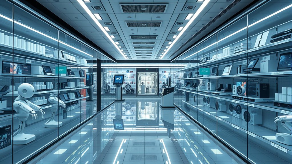 You’ll notice that AI-powered inventory management systems are now predicting demand and automating restocking, keeping shelves full without human intervention. Self-checkout machines and mobile point-of-sale (POS) systems replace traditional cashiers, allowing you to scan, pay, and leave quickly. Advanced robots handle stocking, assist customers, and even provide security, all working without human oversight. Machine learning algorithms analyze your shopping habits to personalize your experience, offering tailored recommendations and promotions. Blockchain technology is also improving transparency and efficiency in supply chains, directly impacting how stores operate and ensuring products are tracked and managed effectively.