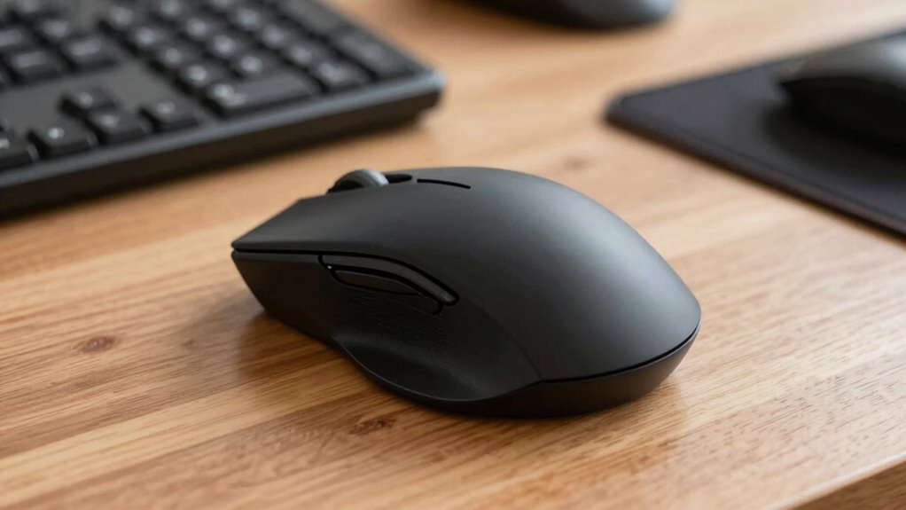 A vertical mouse is like a gentle breeze for your hand, making it suitable for gaming and graphic design if it fits your grip and comfort. Ergonomic gaming benefits from its natural hand position, reducing strain during long sessions. For graphic design, it offers precision and comfort, but you might prefer a traditional mouse for detailed work. Try different models to find the one that feels right for your creative and gaming needs.