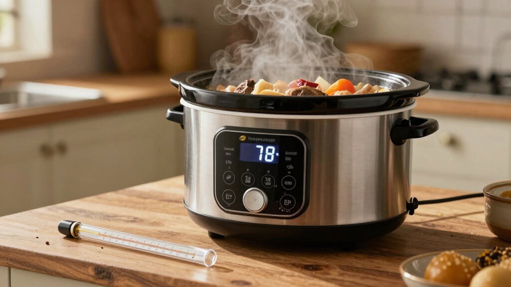 Monitoring these temperatures helps prevent foodborne illnesses while ensuring your dishes are cooked thoroughly. Always use a reliable food thermometer to check for adherence to food safety guidelines, especially when using programmable slow cookers. Temperature safety is crucial in maintaining both food quality and safety.