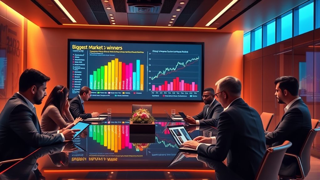 Like a rising sun illuminating new horizons, you see renewable energy and biotech breakthroughs leading growth this year. These sectors symbolize innovation and hope, thriving amid changing landscapes. Renewable energy stocks surged as clean power gained momentum, while biotech breakthroughs sparked excitement with groundbreaking medical advances. You recognize that embracing these sectors means aligning with progress, positioning yourself at the forefront of transformative trends shaping the future economy.