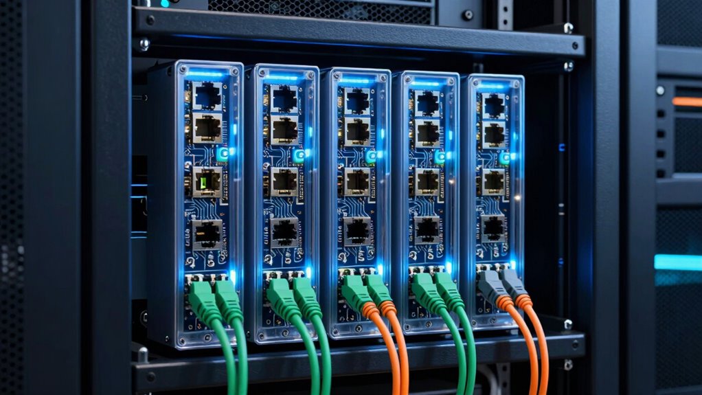You’ll find 5GbE switches offer more bandwidth than standard gigabit options but fall short of 10GbE’s speed. They’re a good middle ground, providing better performance without the high cost of 10GbE. If bandwidth limitations are a concern and you want cost effectiveness, 5GbE switches improve your network without overspending. However, for the highest speeds and future-proofing, 10GbE remains the superior choice.