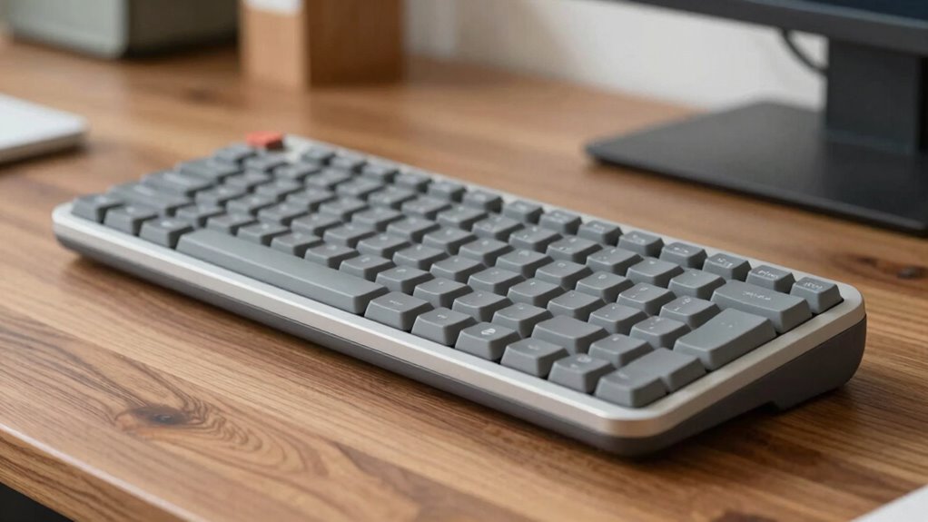 Sure, your keyboard tilt can secretly sabotage your typing speed, but don’t worry—it’s not a conspiracy. When you adjust your keyboard for better ergonomics, it improves your typing posture, making every keystroke smoother. A proper tilt minimizes wrist strain and keeps your hands comfortable, which actually boosts your overall speed. So, yes, tweaking that tilt isn’t just about comfort; it’s a smart move for better productivity and healthier typing habits.