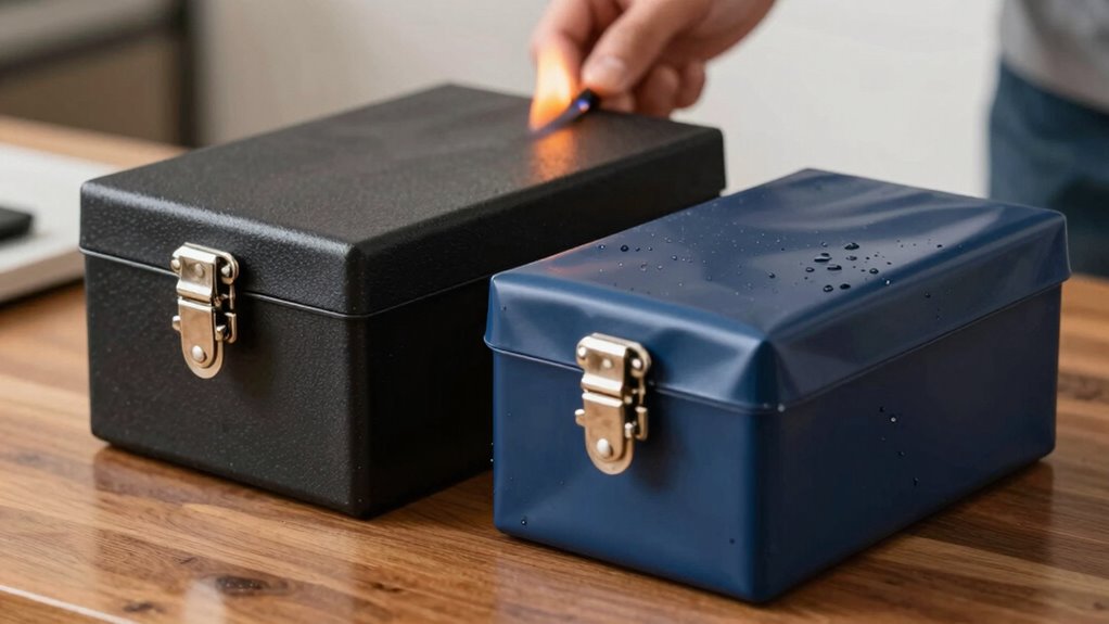 By testing your fireproof and waterproof boxes, you’re not just safeguarding belongings—you’re sealing your trust in resilience. These boxes symbolize a barrier against life’s unpredictable flames and floods, a fortress built from your effort and care. When you perform the seal test, you reinforce that protection, reminding you that even in chaos, a simple act can symbolize hope and preparedness. In mastering this test, you hold the key to peace of mind amid life’s storms.