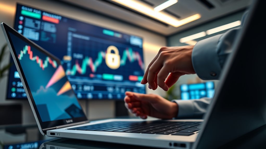 You might notice unusual activity, like unexpected withdrawals or login attempts, which could hint at a compromised exchange. Be alert to phishing attacks that trick you into revealing sensitive info and insider threats that compromise security from within. Sudden account lockouts, suspicious emails, or inconsistent transaction histories are signs your exchange’s safety might be compromised. Stay vigilant and regularly monitor your account for any irregularities to protect your funds.