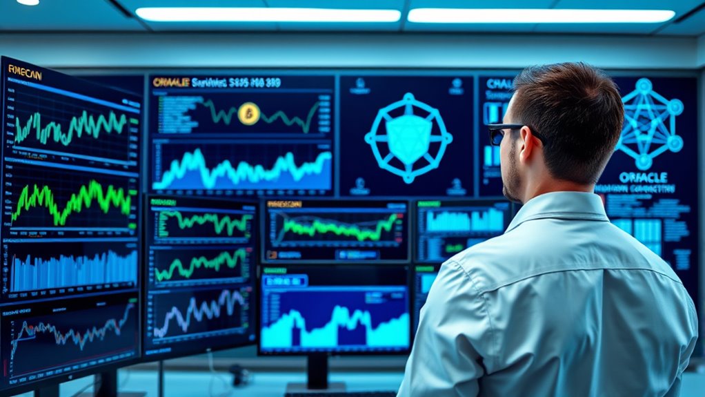 Oracles play a crucial role in preventing stablecoin crashes by providing real-time, accurate data from external sources. They verify key information like backing reserves, helping stop misinformation and delays that could lead to instability. By ensuring trustworthy data feeds across decentralized networks, oracles reduce manipulation risks and improve transparency. If you want to understand how these tools strengthen market stability and what more they can do, there’s more to uncover.