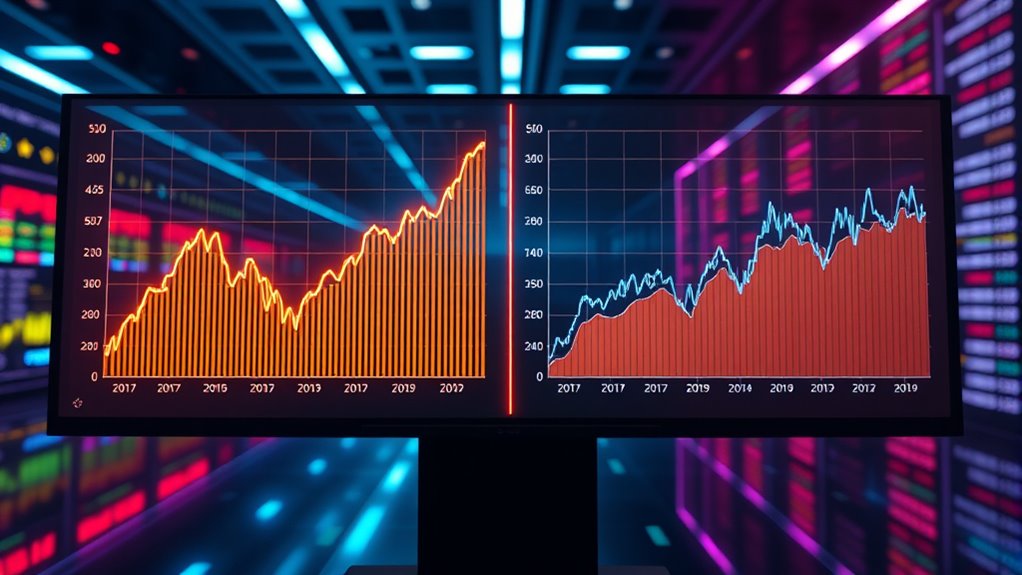 In 2024, fiat-backed stablecoins have proven more resilient, thanks to transparent reserves and existing infrastructure, despite ongoing regulatory scrutiny. Algorithmic stablecoins have faced more volatility but continue to innovate and adapt, showing potential in uncertain markets. While fiat-backed options offer perceived security, algorithmic ones are pushing boundaries with new mechanisms. To understand which type is more likely to sustain long-term stability and success, you’ll want to explore their strategies and future prospects more closely.