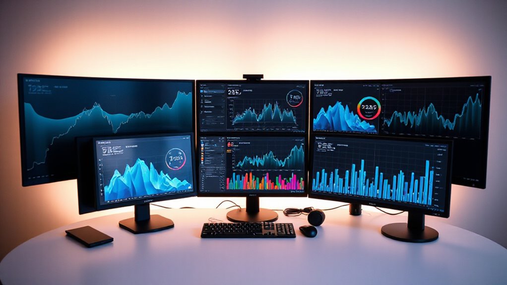 Choosing the right curvature for a 34-inch ultrawide curved monitor can substantially impact your viewing experience and comfort. Monitors typically feature a curvature radius between 1000R and 1500R, designed to match the natural curve of the human eye. A higher curvature, like 1000R, offers a more immersive, enveloping experience, ideal for gaming and multimedia. It also helps reduce eye strain by maintaining consistent focus across the screen, especially during long sessions. Milder curves are better suited for multitasking and professional work, providing a less intense but still comfortable viewing angle. Ultimately, selecting the right curvature depends on your personal preference and intended use, balancing immersion with ergonomic comfort. Proper curvature guarantees a smoother, more comfortable viewing experience over extended periods.