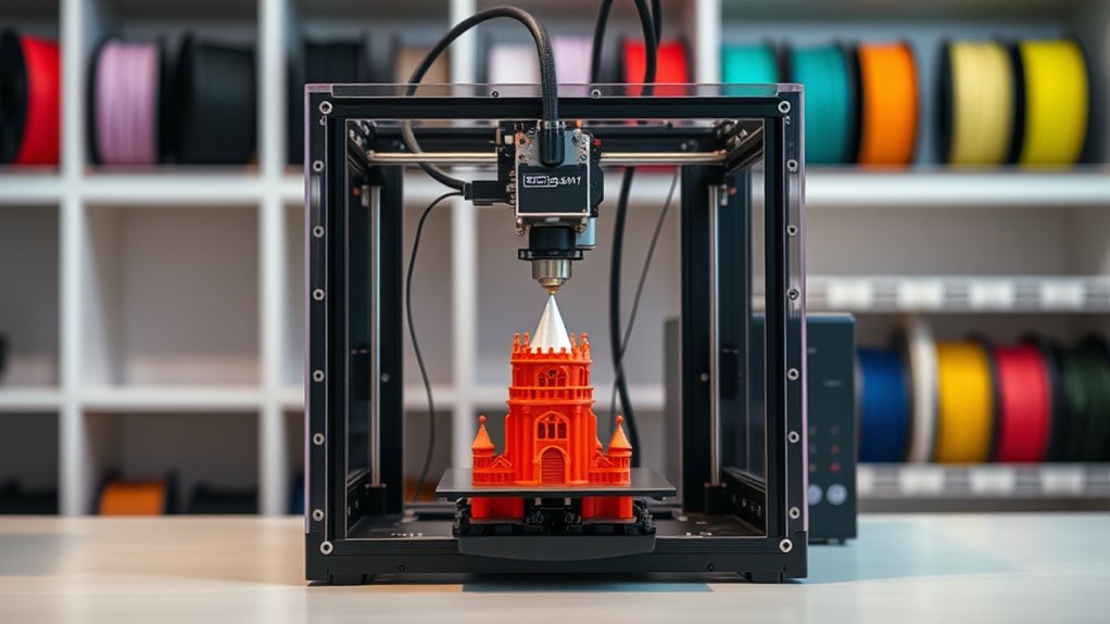 When I built my budget 3D printer, it took about 2 to 4 hours to assemble, depending on experience. For example, a friend with no prior experience finished his in roughly three hours, following step-by-step instructions. These models usually come partially assembled, making setup straightforward. I recommend dedicating extra time for calibration to guarantee high-quality prints, but overall, most under-$500 printers are designed for quick, manageable assembly.