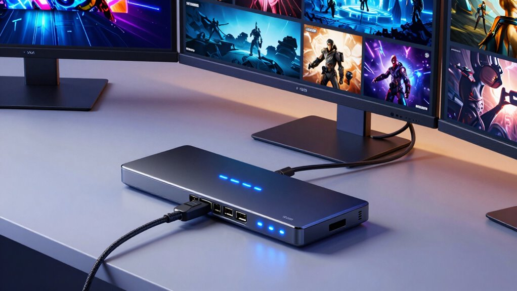 Choosing the right 4K HDMI splitter is like finding the perfect conductor for your multi-display symphony. With so many solid options under $400, you’ll be able to orchestrate a seamless, vibrant visual experience that feels as immersive as a front-row concert. Just remember, the best splitter is the one that harmonizes with your setup and keeps your digital orchestra playing smoothly. Immerse yourself and let your displays sing in perfect unison!