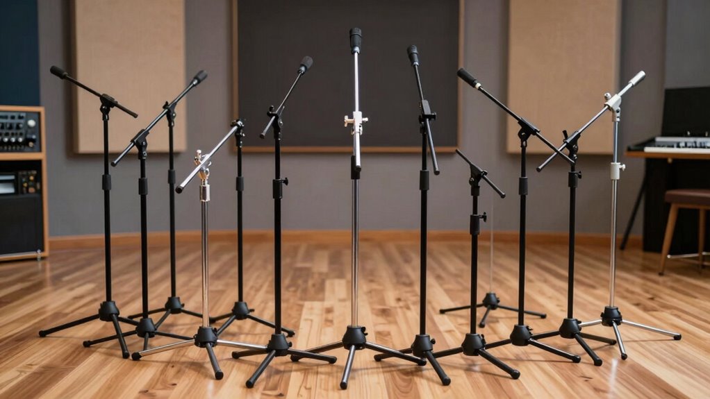 If you’re looking for the 15 best boom mic stands under $350 for overhead audio in 2026, I’ve got you covered. These stands are versatile, sturdy, easy to adjust, and compatible with popular microphones like Blue Yeti or Shure SM7B. They feature adjustable arms, flexible positioning, and cable management for a tidy setup. Stay tuned, and you’ll find detailed insights into each model to help you make the best choice.