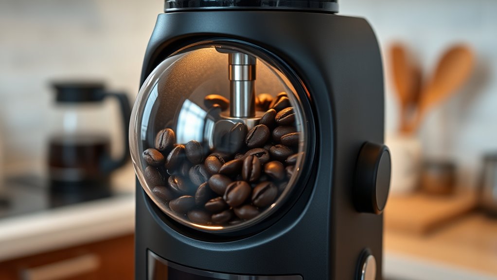 The capacity and size of a burr coffee grinder directly impact how well it fits into your daily routine and kitchen space. A larger capacity means you can grind more coffee at once, reducing the need for frequent refills—great for brewing multiple cups or hosting guests. However, bigger models often have bigger dimensions, which might not suit small kitchens or limited counter space. Smaller, compact grinders are ideal if space is tight, but they usually require more frequent refilling for larger batches. When choosing, consider how much coffee you typically brew and how much room you have. Finding the right balance between capacity and size ensures your grinder meets your daily needs without cluttering your kitchen.