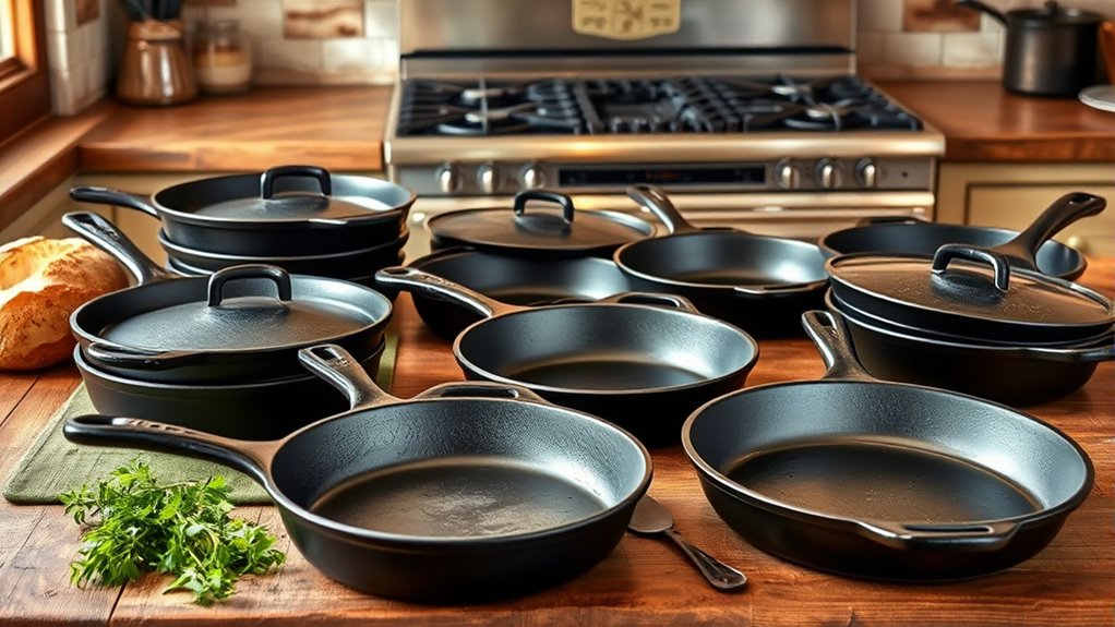 Did you know that cast iron cookware can last for generations with proper care? Choosing the right skillet can truly elevate your cooking game, and with options like Lodge’s seasoned skillets or the versatile Cuisinel lid model, you’re set for any meal. Investing in quality cast iron not only enhances flavors but also provides incredible durability—some pieces have been passed down for over 100 years! Happy cooking and happy heirlooms!