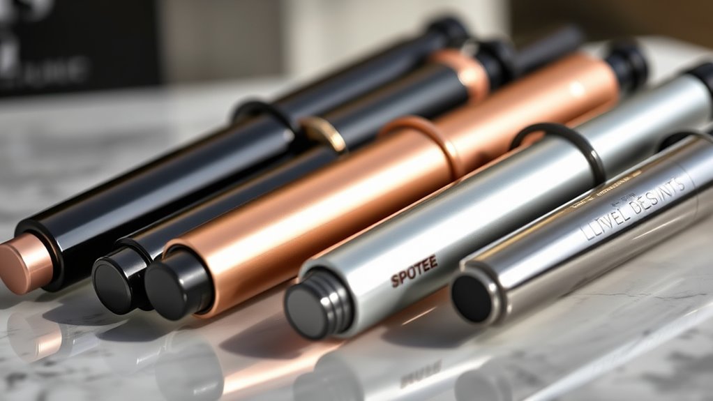 The material and coating of a curling iron’s barrel play a crucial role in how effectively and gently it styles your hair. Different materials, like ceramic, titanium, or tourmaline, influence heat distribution and overall hair health. Ceramic coatings provide even, gentle heat that reduces hot spots and minimizes damage, making them perfect for daily styling. Titanium barrels heat quickly and hold high temperatures, ideal for fast results and thicker hair types. Tourmaline-infused coatings emit negative ions that neutralize static, leaving your curls shinier, smoother, and frizz-free. The quality of the coating also impacts durability and performance; higher-grade materials tend to last longer and deliver more consistent results. Choosing the right material and coating ensures your curls are beautiful, healthy, and long-lasting.