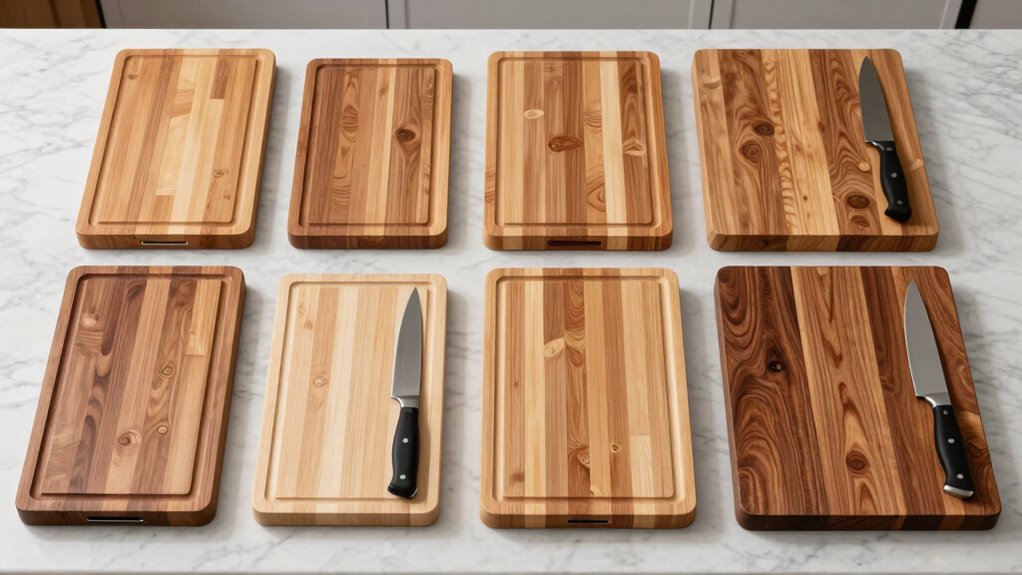 Choosing a cutting board that’s compatible with your knives is essential to keep them sharp and in top condition. The material of the board plays a big role here, as some surfaces are gentler on blades than others. Hard surfaces like glass or stone can dull knives quickly, requiring frequent sharpening and risking damage. On the other hand, softer materials such as wood or certain plastics help preserve blade sharpness over time. It’s important to select a material that strikes a balance—durable enough for daily use but gentle enough to safeguard your knives. By prioritizing material compatibility, you ensure your knives stay sharper longer, improving your overall cooking experience and extending the lifespan of your blades.