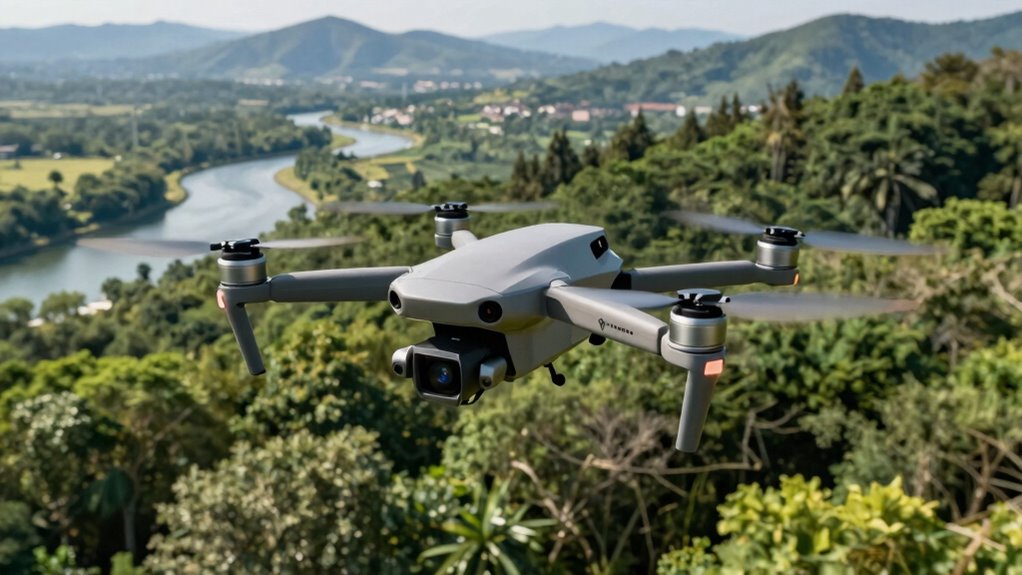If you’re serious about capturing stunning 4K footage and want a drone that can navigate complex environments effortlessly, these options are game-changers. With advanced obstacle avoidance and long flight times, they truly elevate your aerial experience to new heights—almost like having your own personal drone guardian angel. No matter which one you choose, you’ll be amazed at how these gadgets transform your creative possibilities into breathtaking realities. The sky’s not the limit; it’s just the beginning.