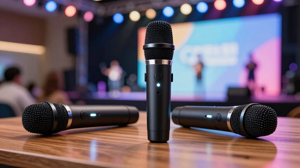 In wrapping up, I hope my list helps you find the perfect pair of powerful, portable, and budget-friendly microphones. Whether you’re hosting heartfelt weddings or lively karaoke nights, these sets deliver dynamic sound and dependable performance. Immerse yourself in the details, decide what suits your needs, and don’t forget—great gear guarantees grand gatherings. With the right wireless microphone, your event will shine, sparkling with sound, style, and seamless success.