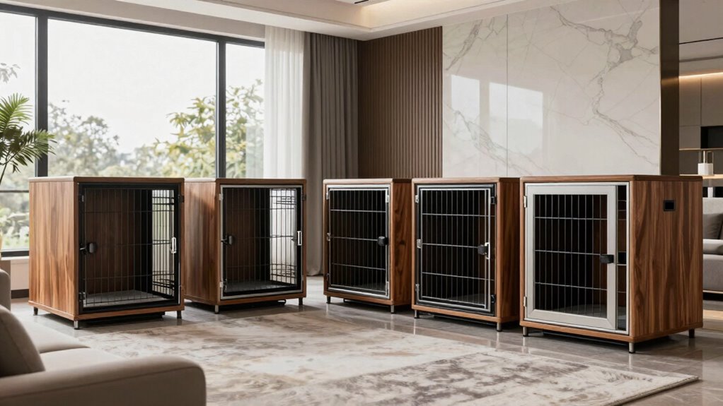 So, I’ve found that the perfect furniture-style crate isn’t just about size but blends seamlessly with your home. Coincidentally, many of these options also serve as stylish furniture, making them a win-win. Whether you prefer a cozy end table or a sleek TV stand, there’s a design that fits your vibe—and your big pup’s needs. After all, a crate that looks good and feels right just might be the key to happier, calmer large dogs.