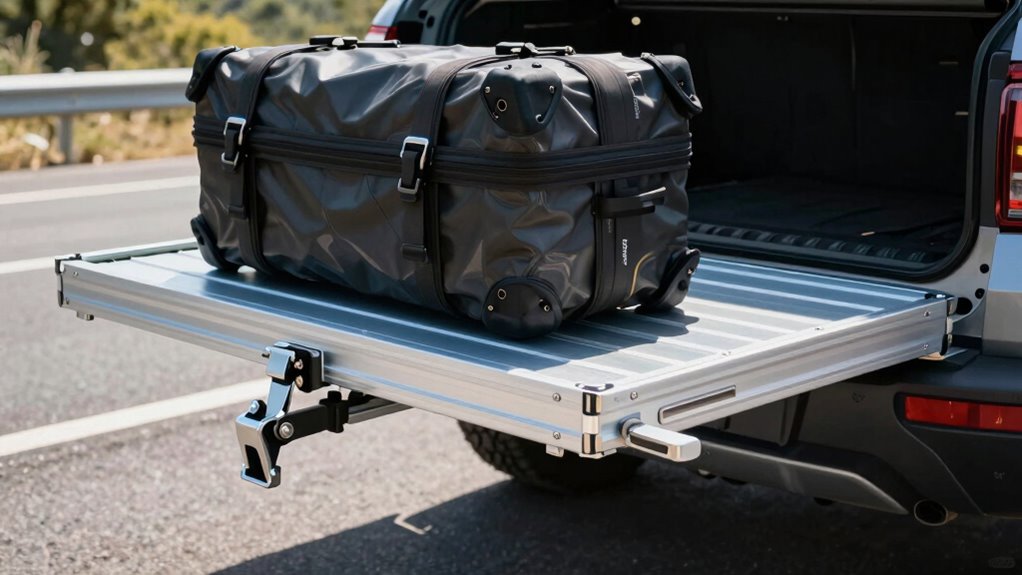 Aluminum hitch cargo carriers are known for their exceptional resistance to rust and corrosion, making them a dependable choice for all weather conditions. This durability means they won’t degrade or weaken over time, even when exposed to rain, snow, or salt. The lightweight nature of aluminum reduces strain on your vehicle’s hitch receiver and helps improve fuel efficiency. Anodized aluminum surfaces provide extra protection against scratches, UV damage, and chemical corrosion, keeping the carrier looking new longer. Thanks to aluminum’s high strength-to-weight ratio, these carriers can support heavy loads without adding unnecessary weight. Overall, aluminum’s durability and resistance ensure your cargo carrier remains sturdy, reliable, and weatherproof for years of use.