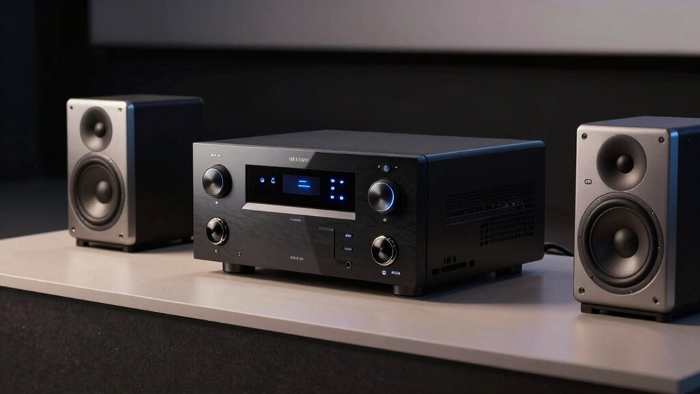 To determine the best power output for your speakers, I always check their recommended wattage, usually printed on the back or in the manual. I aim for a receiver that provides slightly more power than the speakers’ rating to avoid distortion. Matching the impedance is also vital. If you’re unsure, I suggest consulting a professional or doing some research to guarantee compatibility and peak sound quality.