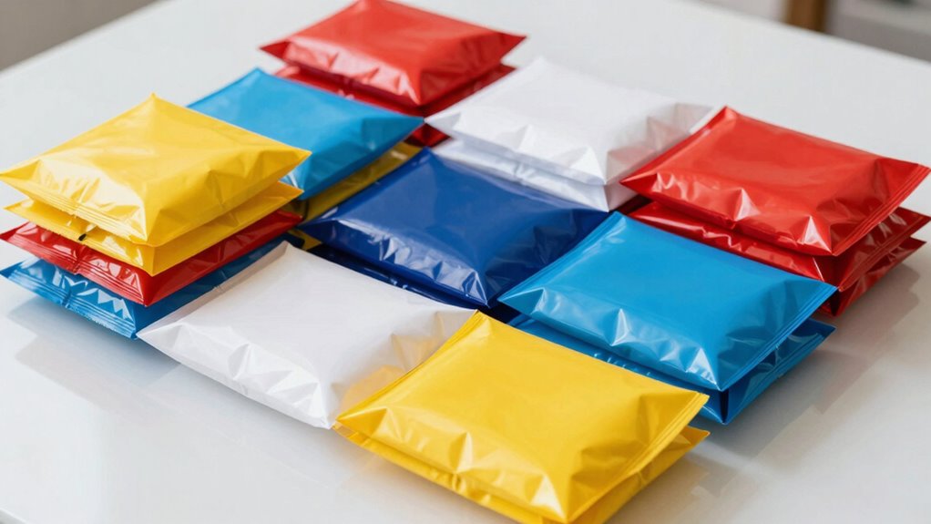 Choosing a poly mailer bulk pack with a variety of sizes is essential for efficient shipping and inventory management. When you have multiple size options, you can better accommodate different product dimensions, reducing wasted space and ensuring a snug fit. This flexibility helps optimize shipping costs by selecting the most appropriate envelope for each item, avoiding oversized packages that inflate postage. It also streamlines your packing process by minimizing the need for additional packaging materials. Plus, having varied sizes allows you to handle diverse product categories like apparel, accessories, and documents more effectively. Overall, a pack with a range of dimensions enables quicker access to the right size for each shipment, making your operation more organized and cost-efficient.
