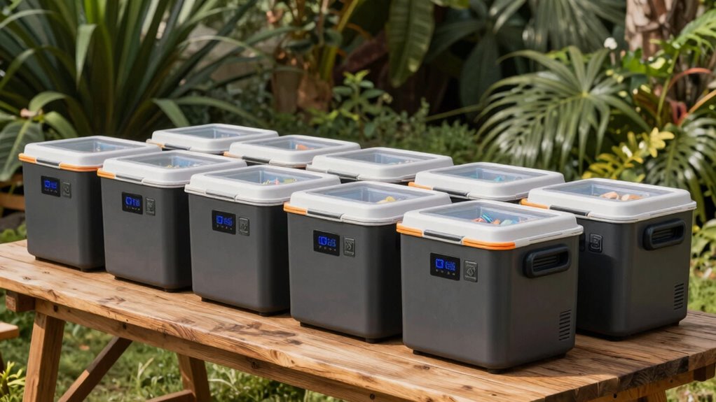 If you’re looking for the 15 best portable camping refrigerator freezers for 2026, I’ve checked out top models like ICECO JP50 Pro, BougeRV 12V, EUHOMY, Setpower AJ30, and Feelfunn, among others. These units stand out for their excellent cooling capabilities, size options, energy efficiency, and user-friendly features. Whether you need compact designs or larger capacities with dual zones, there’s something for every outdoor enthusiast. Keep going to discover more about these reliable, versatile coolers that can enhance your outdoor adventures.