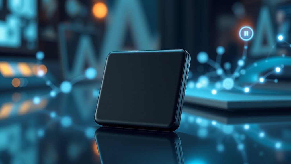 Rugged portable drives are designed to endure extreme conditions by featuring sturdy, shockproof, and waterproof cases. I’ve tested them in harsh environments, and they hold up well against drops, dust, and moisture. They often include reinforced bumpers and rubberized exteriors that absorb impacts. These drives also use rugged sealing techniques to keep out water and debris, ensuring your data remains safe even in the most challenging outdoor or industrial settings.