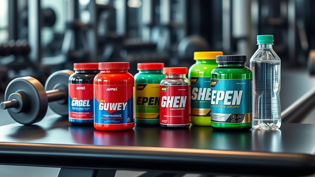 Timing your pre-workout supplement intake is essential for maximizing its benefits during exercise. I recommend taking them about 20-30 minutes beforehand to guarantee energy levels and performance boost when you start working out. If you take them too early, the effects may fade before you even begin, while taking them too late can cause sleep issues due to caffeine stimulation. Proper timing also helps active ingredients like caffeine and beta-alanine work at their peak, enhancing focus and muscular endurance. Some athletes split doses, taking half before and half during the workout, to maintain sustained energy and focus. Overall, aligning intake with your workout schedule assures you get the most out of your supplements, improving both performance and experience.