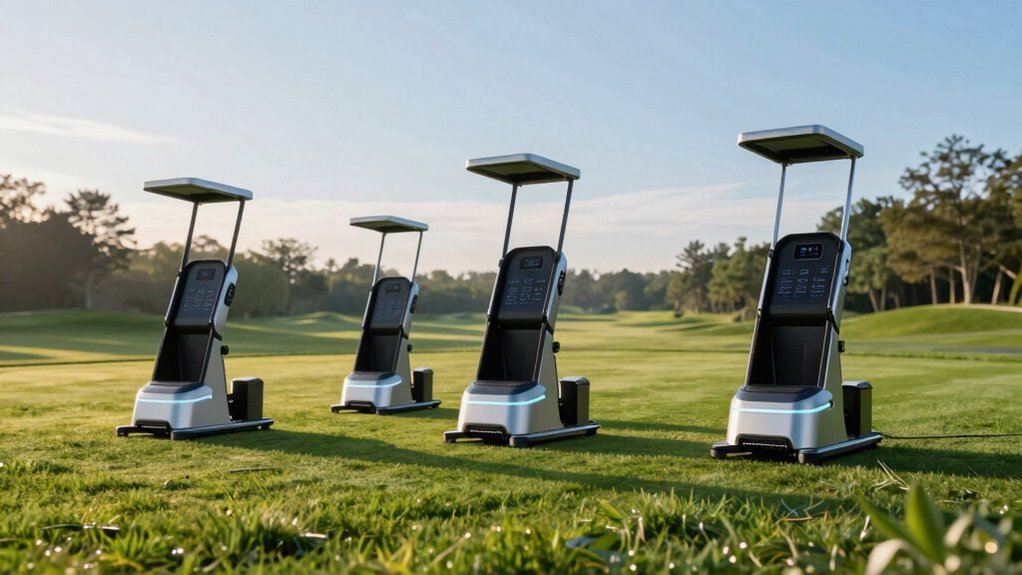 Maintaining a golf printer requires regular attention to guarantee consistent performance and print quality. I find that cleaning printheads and nozzles regularly prevents clogs and ensures sharp, clear prints. Checking the ink system, including refilling or replacing cartridges and cleaning circulation parts, is crucial to keep everything running smoothly. Some models need daily or weekly calibration to maintain color accuracy and precise details, especially for high-quality golf course maps or visuals. Automated cleaning features help reduce manual effort but can use extra ink and raise costs. Proper handling and storage of inks and cleaning solutions also extend the printer’s lifespan and prevent breakdowns. Staying on top of these maintenance routines is essential to keep your printer functioning at its best and saving you time and money in the long run.