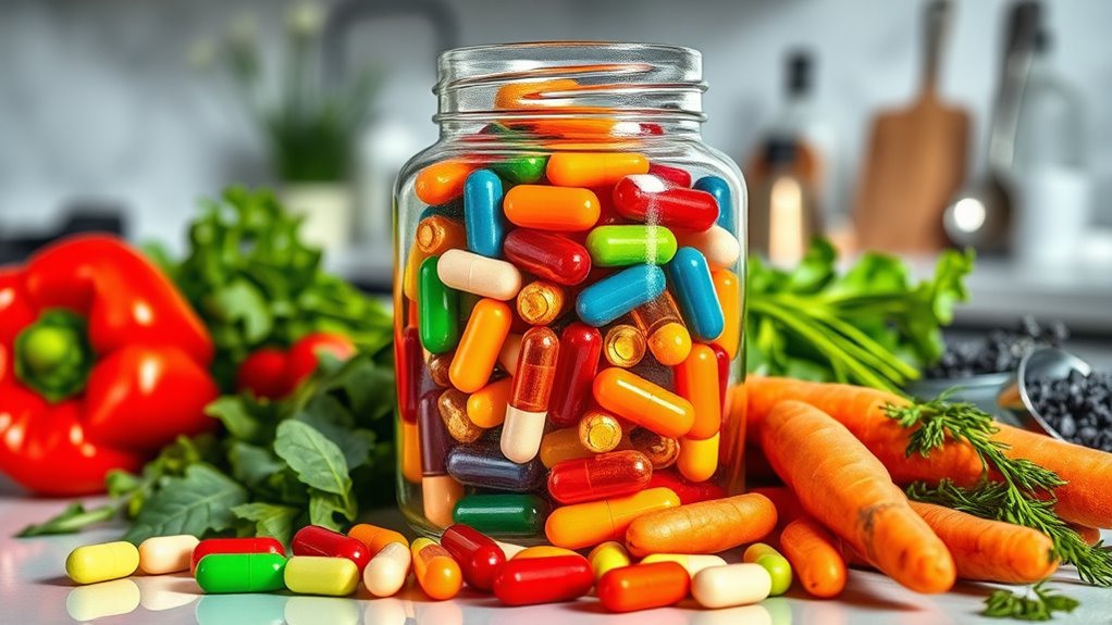 Choosing a probiotic with a diverse range of strains is essential because it offers broader benefits for gut health, immune function, and overall wellness. Different strains, like Lactobacillus and Bifidobacterium, target specific areas such as digestion, inflammation, and pathogen resistance. Including multiple strains helps create a resilient, balanced microbiome and reduces reliance on a single bacterial type. Strain diversity also improves the chances of probiotics surviving stomach acid and effectively colonizing the gut. Additionally, research indicates that multi-strain formulations can have synergistic effects, boosting overall probiotic efficacy compared to single-strain products. By selecting a probiotic with a variety of strains, you’re more likely to experience holistic health benefits and ideal gut support.