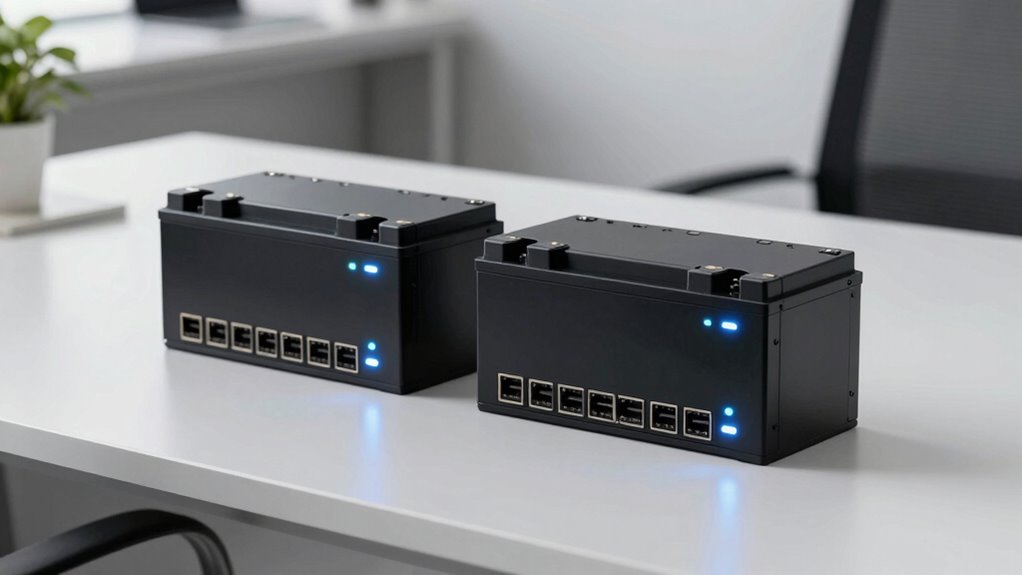 Professional UPS batteries usually last between 3 to 5 years, depending on usage and maintenance. I’ve found that regular testing and proper cooling can extend their life, but eventually, they’ll need replacing. It’s essential to monitor their performance and replace them before they fail completely to ensure your equipment stays protected. Staying proactive helps me avoid unexpected downtime and costly repairs, so I always keep an eye on battery health.