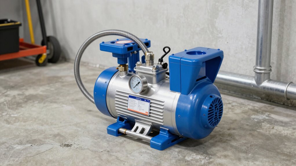 Since noise and vibration can considerably affect my basement environment, I pay close attention to these factors when selecting a sewage ejector pump. I look for models with noise levels below 60 dB to keep disturbances minimal. Pumps with balanced impellers and vibration-dampening mounts help reduce operational noise and prevent wear. Proper installation on a stable, level surface is essential to minimize vibration transfer and avoid noise caused by shifting or movement. I prefer pumps with enclosed or insulated motor housings, which operate more quietly by dampening mechanical sounds. Regular maintenance, like tightening fittings and replacing worn parts, also plays a key role in reducing vibration-induced noise over the pump’s lifespan. These considerations ensure my basement stays quieter and more comfortable.