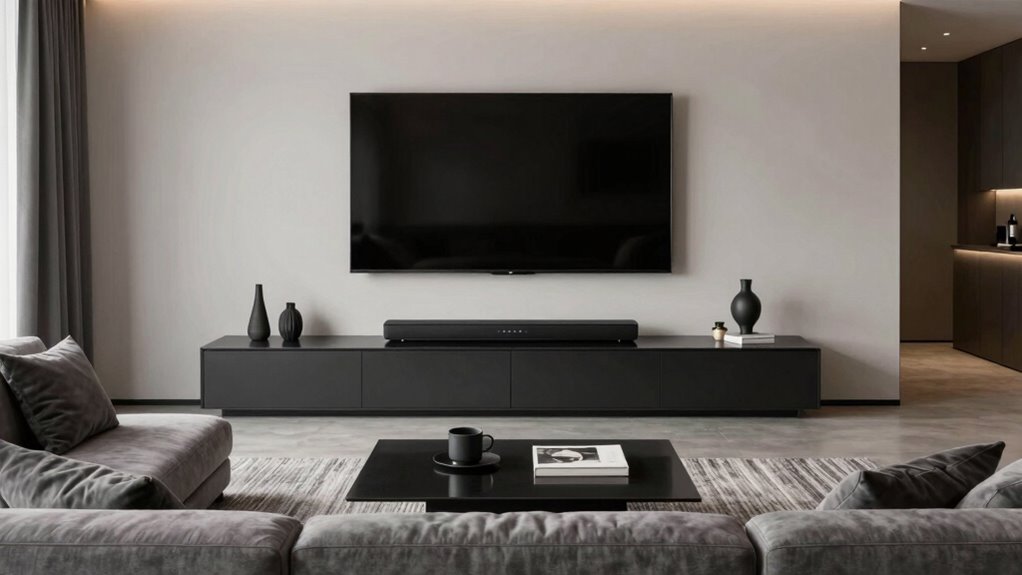 Choosing the right soundbar is like finding the perfect symphony for your living room. With options from immersive 7.1ch systems to sleek Bluetooth speakers, there’s a harmony for every space and taste. When you pick one that complements your setup, you’ll transform your living room into a concert hall, where every note resonates with clarity and depth. So, trust your instincts and let your new soundbar be the maestro of your home entertainment.