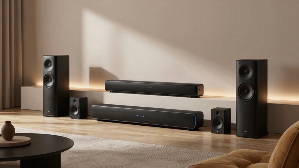 Choosing the right wireless surround sound system is like selecting the perfect symphony for your living room. With so many options, you can craft an immersive audio landscape that transports you beyond the ordinary. Think of it as tuning into a hidden orchestra, where every note surrounds you in rich detail. Whichever you pick, it’s your personal portal to cinematic magic, turning everyday spaces into grand auditoriums of sound.