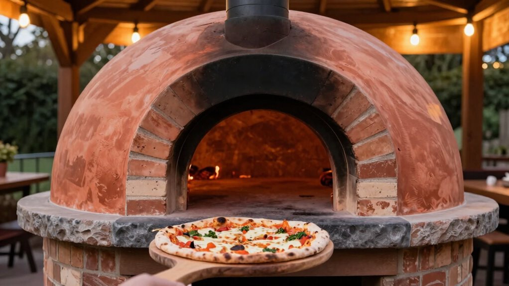 Choosing a well-built wood-fired pizza oven means paying close attention to the materials used and the craftsmanship behind it. High-quality ovens are made from durable materials like stainless steel, cast iron, or high-temperature resistant ceramics, designed to withstand extreme heat and outdoor elements. The thickness and insulation of the walls play a essential role in heat retention and even cooking, with thicker, well-insulated shells offering more consistent temperatures. Using food-grade, heat-resistant materials ensures safety and prevents contamination, especially when cooking with natural wood or pellets. A sturdy frame with reinforced joints and stable legs improves overall durability, reducing wobbling during use. Proper sealing around the door and chimney is critical for efficient airflow, smoke control, and optimal cooking performance.