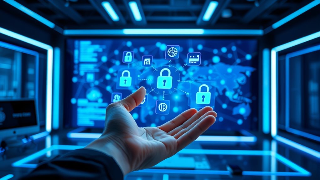 Privacy regulations critically influence how you deploy decentralized identity solutions. You must guarantee your system meets legal compliance by adhering to privacy laws like GDPR or CCPA, which govern data handling and user consent. These laws protect user rights and impact your design choices, requiring robust security measures and transparent policies. Failing to comply can lead to penalties, so understanding privacy regulations is essential for seamless, lawful decentralized identity deployment.